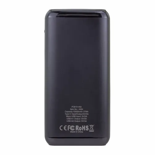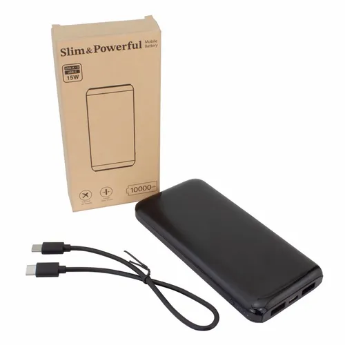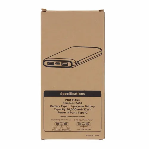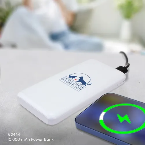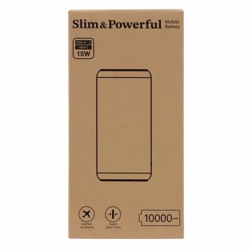 The elegant and sleek 10,000 mAh Power Bank is a slim and powerful mobile device charging power bank with a Type-C input/output port and two USB-A output ports. It's great for professional teams that travel for business and need to keep important devices changed throughout the workday.