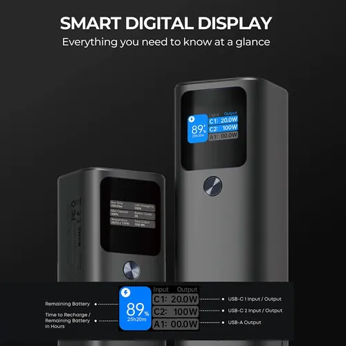 An amazing 27600mAh capacity power bank with 140W fast charging will supply large-size laptops. With dual-direction charging, it supports both high-speed charging and recharging. It will fully charge mobile phones multiple times, as well as charge two laptops at full speed simultaneously.