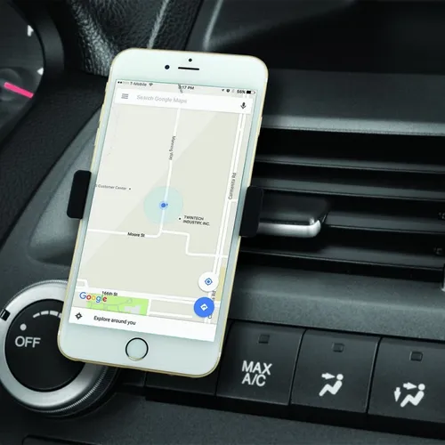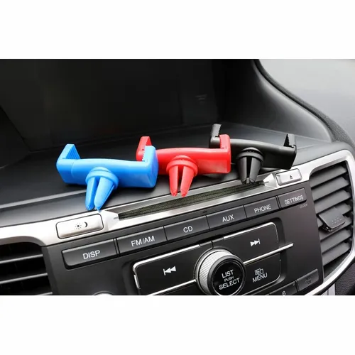 This Cell Phone Car Mount allows you to stand your phone up in your car for hands free calling. Fits on the air vent of your car.